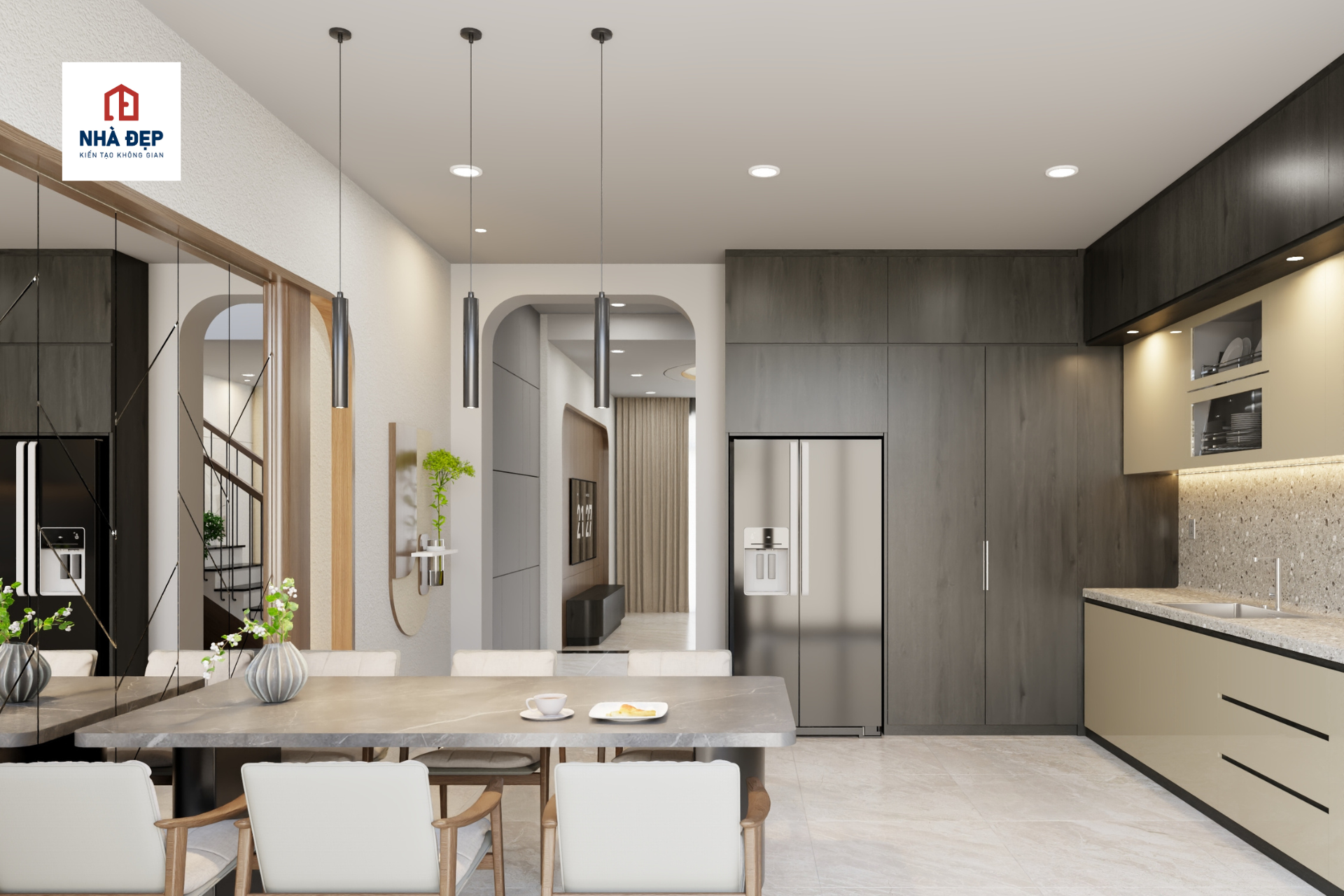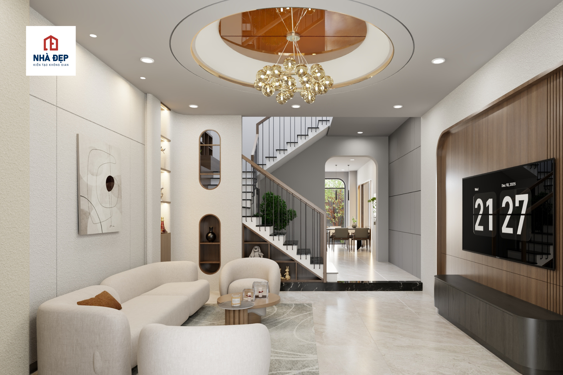Ngôi nhà phố 1 trệt 2 lầu của chị Huyền Thy tại Tân Phú gây ấn tượng với thiết kế hiện đại, nổi bật bởi đường cong mềm mại ở mặt tiền, kết hợp vô cùng tinh tế giữa gam trắng thanh lịch và vật liệu gỗ ấm áp. Không gian nội thất được chăm chút theo phong cách tối giản nhưng vẫn sang trọng, với phòng khách rộng thoáng, ánh sáng tự nhiên hài hòa cùng hệ đèn trang trí tạo điểm nhấn. Bố cục công năng được tối ưu trên diện tích 5x15m, đảm bảo sự tiện nghi và thông thoáng cho cả gia đình. Đặc biệt, tổng chi phí đầu tư cho công trình này chưa đến 2 tỷ đồng, là một lựa chọn lý tưởng cho những ai đang tìm kiếm giải pháp nhà phố đẹp – tối ưu – tiết kiệm.